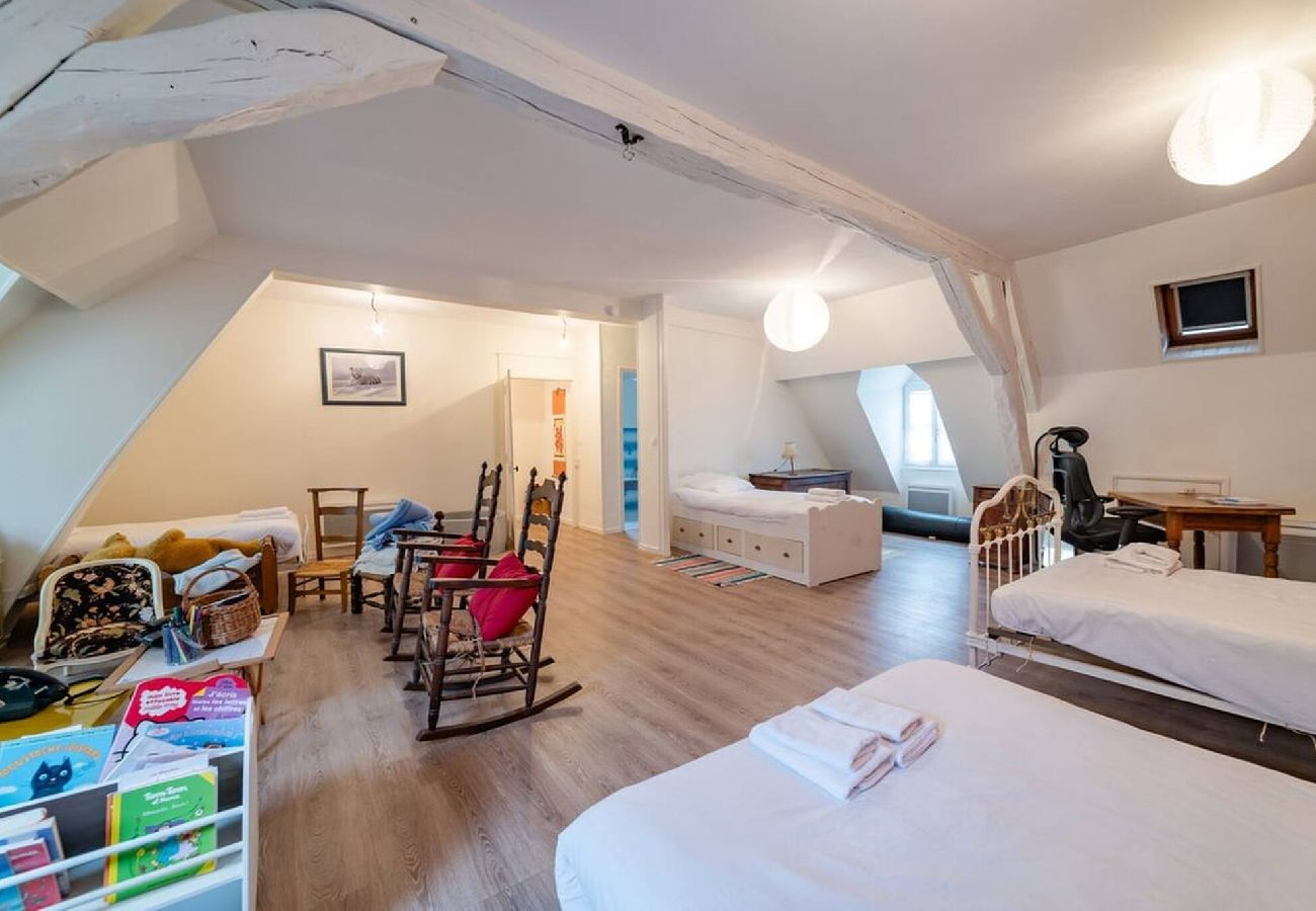 Découvrez notre maison à Auxerre : cuisine équipée, salon, salle à manger, WC, 4 chambres à l'étage avec lit double, 1 chambre dortoir avec 4 lits, 4 salles d'eau dont une avec baignoire. Terrasse, jardin. Emplacement central pour explorer la ville.